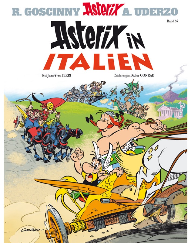 Das lange Warten hat ein Ende. Ab heute hagelt es wieder Backpfeifen und blaue Augen - und zwar in Italien. Das 37. Abenteuer unserer gallischen Freunde ist nun sofort im Handel erhältlich. Zum dritten Mal aus der Feder des Autorenduos Jean-Yves Ferri (Text) und Didier Conrad (Zeichnungen) - selbstverständlich unter der Schirmherschafft von Asterix-Vater Albert Uderzo.