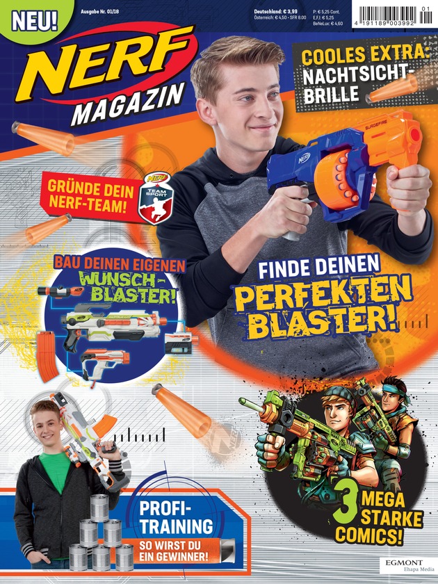 Das Magazin mit spannenden Comics, starken Rätseln und jede Menge Action ist ab 17. April im Handel sowie online unter https://www.egmont-shop.de/nerf-1-2018.html erhältlich.