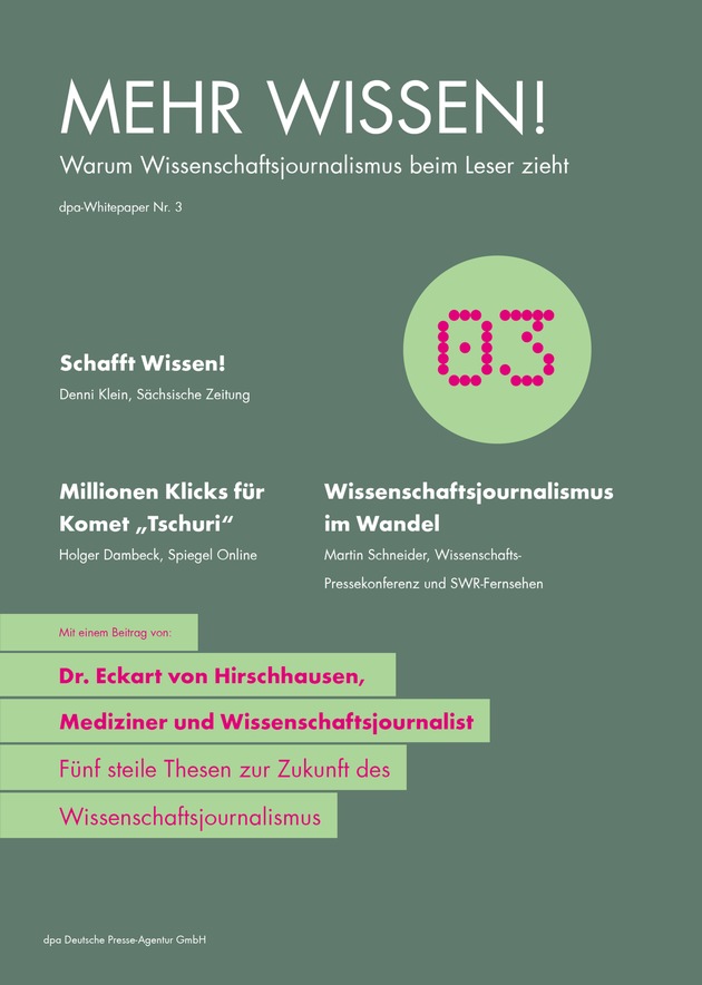 "Mehr Wissen!": Neues dpa-Whitepaper zu Trends im Wissenschaftsjournalismus (FOTO)