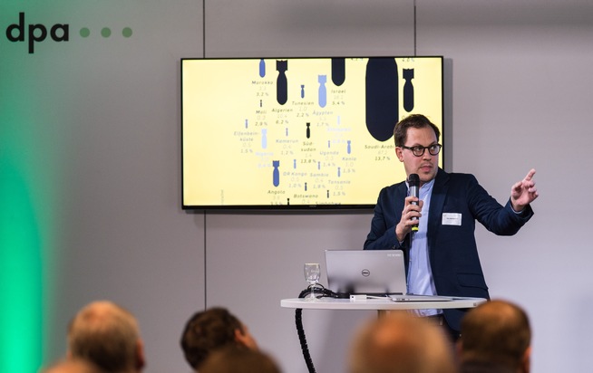 "Zu den wichtigsten Trends, die wir beobachten, gehört der Verzicht auf unnötigen Schnick-Schnack und Effekte", erläuterte Raimar Heber, Art Director bei dpa-infografik und Initiator des Awards. "Die Siegergrafik von Capital ist dafür das beste Beispiel: Flache Bomben-Silhouetten und messbare Flächen machen die weltweiten Rüstungsausgaben auf einen Blick erfassbar", ergänzte Raimar Heber.