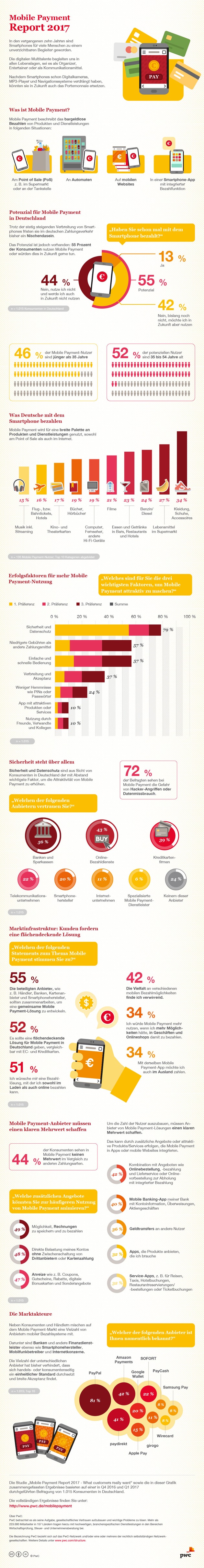 Die vollständigen Ergebnisse der Studie "Mobile Payment Report 2017 - What customers really want" und weitere Informationen, einschließlich aller Grafiken, finden Sie im Web unter folgendem Link: www.pwc.de/mobilepayment