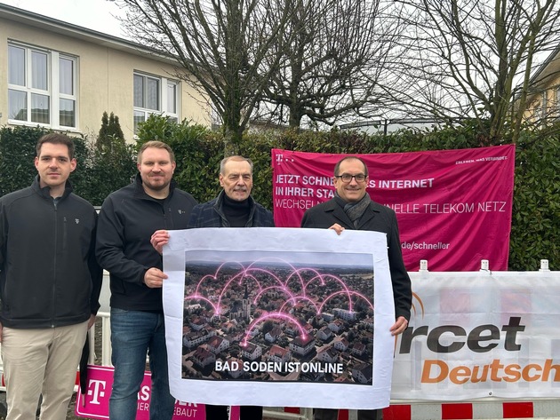 Der Glasfaserausbau der Telekom in Bad Soden am Taunus ist abgeschlossen. Die Deutsche Telekom ermöglicht im Rahmen des Ausbauprojekts insgesamt 13.814 Haushalte einen Anschluss an das gigabitfähige Glasfasernetz. Durch den nahezu flächendeckenden Ausbau von Bad Soden stehen im gesamten Ausbaugebiet Bandbreiten von bis zu 1 Gbit/s zur Verfügung. Um dies gebührend zu feiern, trafen sich Vertreter der Stadt und der Telekom am 14. Januar im letzten Bauabschnitt.