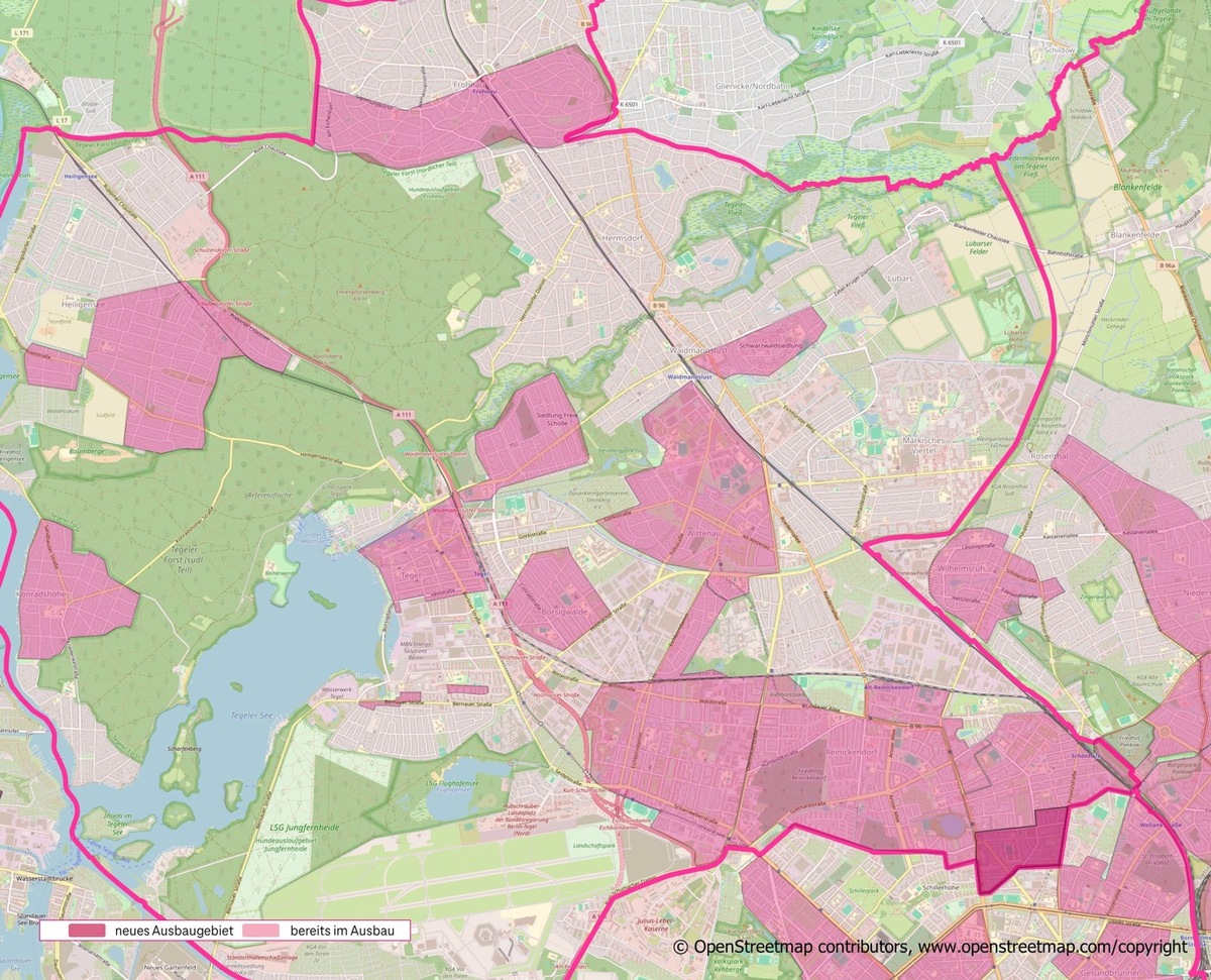 Wer nicht im aktuellen Ausbaugebiet liegt, kann sich ebenfalls unter www.telekom.de/berlin registrieren. Die Telekom informiert, sobald der Ausbau startet. Grundsätzlich gilt: Je mehr Haushalte Interesse zeigen, desto schneller beginnt der Ausbau.