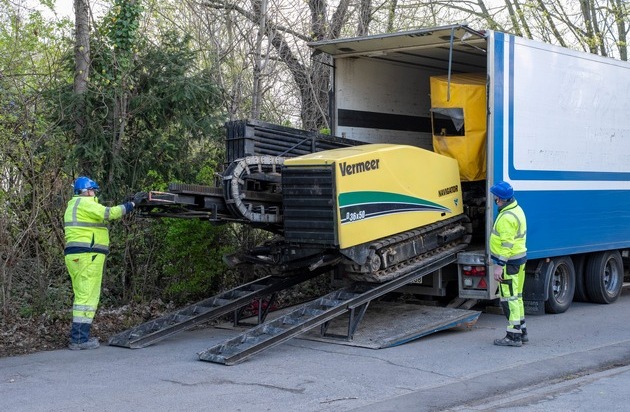 BU Bild 1: Der Spülbohrer wurde von der Firma dk Hoch- und Tiefbau eigens für diesen Einsatz nach Mondorf gebracht.