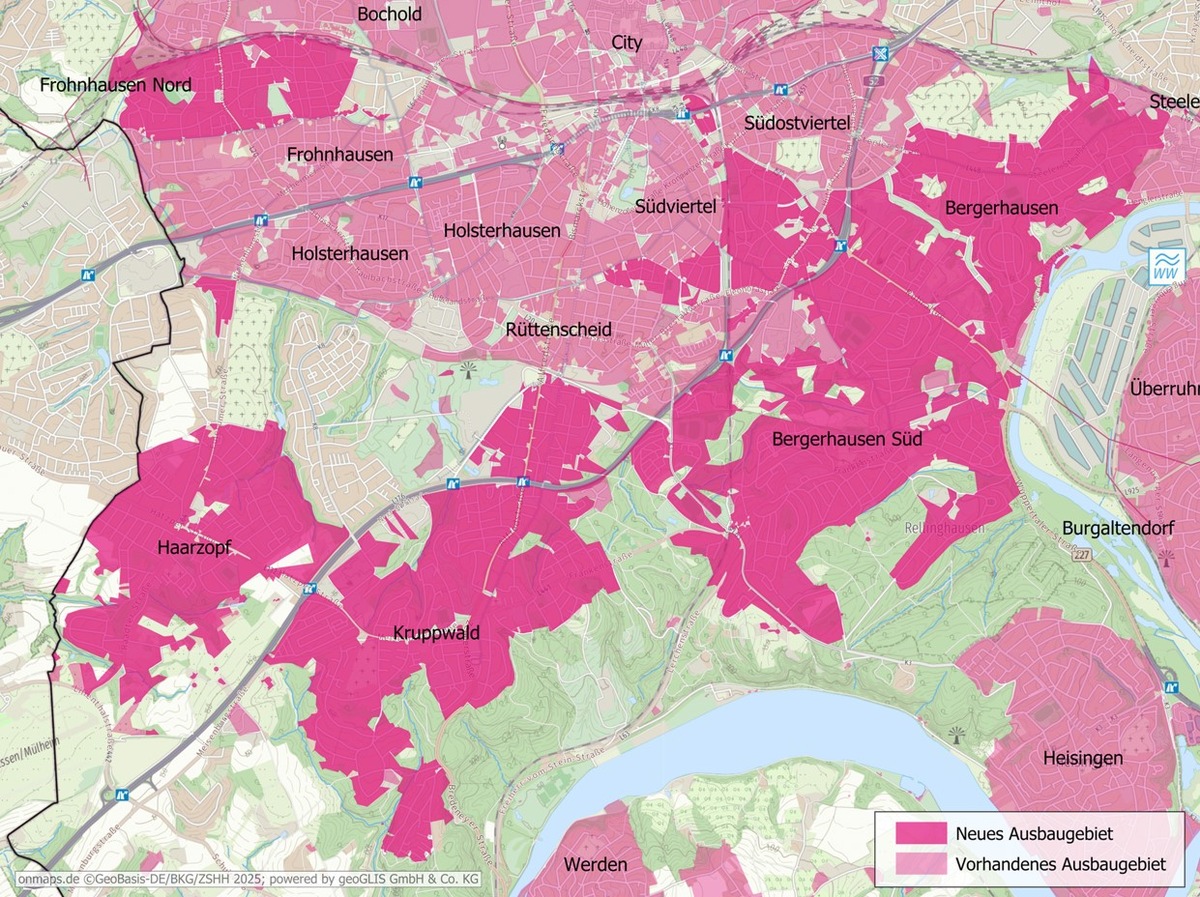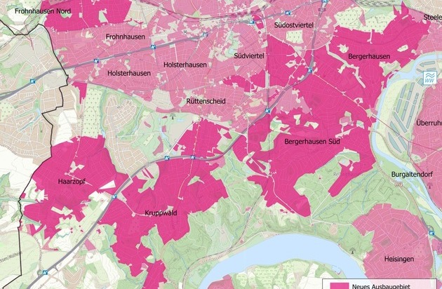 Die Telekom wird in Kürze ihren eigenwirtschaftlichen Glasfaserausbau in Essen fortsetzen. Erschlossen werden weitere über 50.000 Haushalte und Betriebe in den Stadtteilen Bergerhausen, Frohnhausen und Kruppwald. Die neuen Anschlüsse können ab sofort gebucht werden. Anfang März hat die Telekom bereits mit der Vermarktung für das Ausbaugebiet in Frohnhausen begonnen. Das neue Glasfasernetz ermöglicht deutlich höhere Geschwindigkeiten bis 1.000 Megabit pro Sekunde.