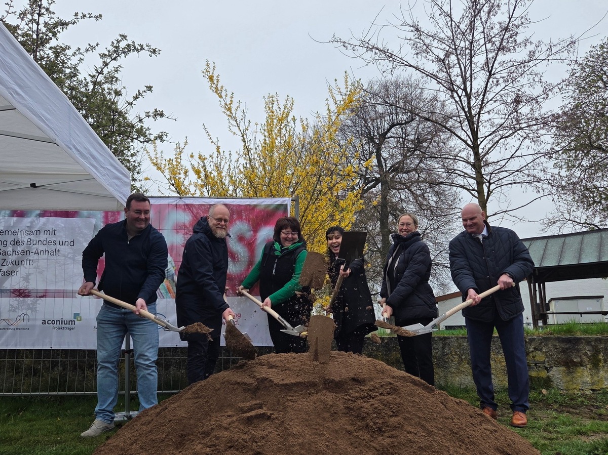 Zum symbolischen Spatenstich für den geförderten Breitbandausbau im Saalekreis sind gestern der Staatssekretär für Digitales, Bernd Schlömer, die Dezernentin für Kreisentwicklung, Sabine Faulstich, der Bürgermeister von Querfurt, Andreas Nette sowie der Konzernbevollmächtigte der Telekom Region Ost, Axel Wenzke angetreten.
