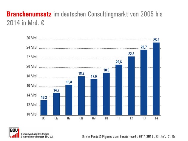 2014 ist der Umsatz in der Consultingbranche um 6,4 Prozent auf 25,2 Milliarden Euro gestiegen - Optimistische Prognose auch für das Jahr 2015